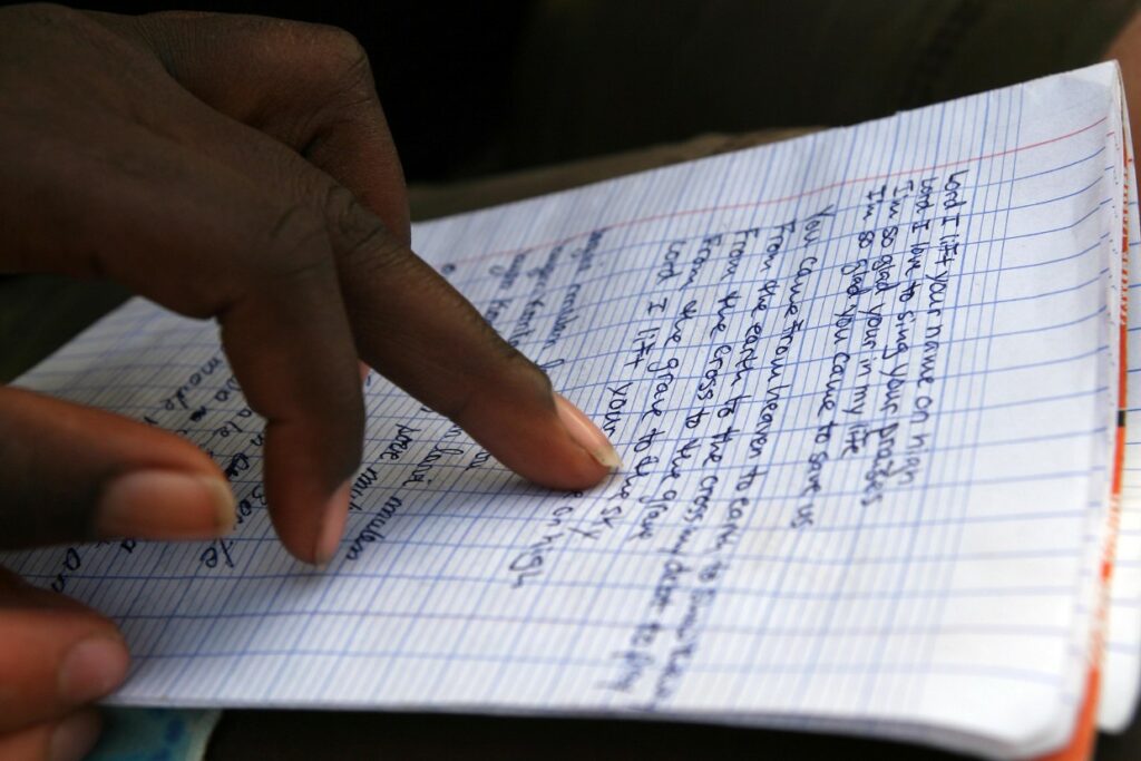 It is the same way with us. If I ignore you or resist a relationship with you, you will naturally leave feeling rejected. However, if I tell you all the amazing things I see in you and invite your relationship, you will remain feeling welcomed. God will not force us to want to be with Him. He will not force Himself on us in any way. Where He is welcomed, though, He dwells. And where He dwells there is safety. (Below is an image of a girl learning worship songs in English. She read and sang along for quite a while)