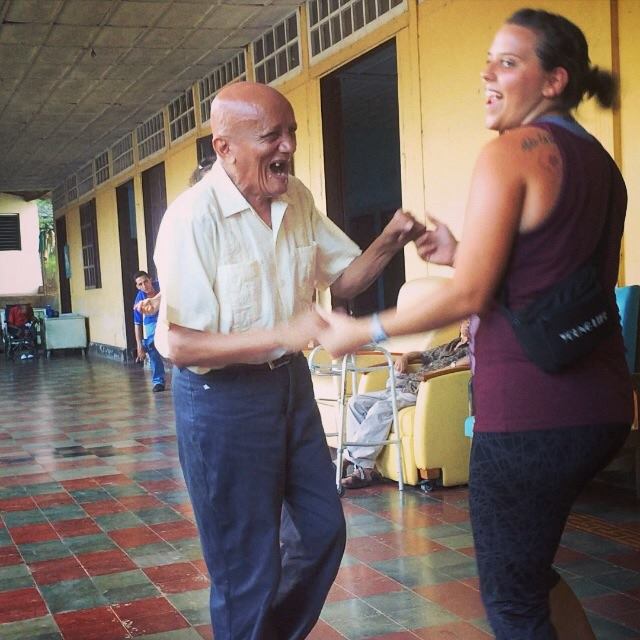 Last Saturday we visited the local nursing home, called “Home of the Ancients,” and feed them as well as hung out. I fed an older man with a contorted body that would reach for more food before he was even finished with his bite. I tried to tell him in English to finish the bite before more, with failed attempts at this. He was almost skin and bones and barely spoke at all; it saddened me really. I did have the chance, though, to meet Leonce, and older man that claimed I was beautiful even though he was blind, hah! We talked for awhile and then he let me pick a good station on his old portable radio. I asked him to dance and he said no, but a man across from us, Roberto, wanted to. I had to help him stand but once he got up his feet were a blaze with almost a tap dance and the laughter was contagious.