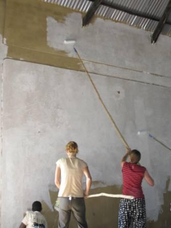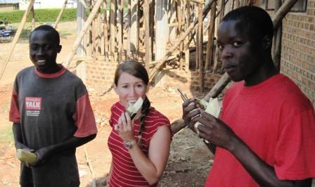In Kanungu we spoke at 3 schools during our first week. The next 2 weeks the kids were on school holiday and each local church hosted youth events where we presented the program. We spoke on topics such as HIV/AIDs, life in America, and also gave encouraging messages from the Bible. We also worked with the church youth painting the new addition to the cathedral. I had a lot of fun painting with 15 foot tree branches attached to the end of the paint roller. The church is big with about 700 people from the village and surrounding areas coming to church on Sundays.