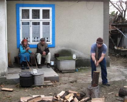 We also got to help some elderly folks with their gardens and wood chopping. See the couple in the back? How cute!