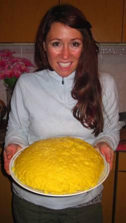 We are eating all kinds of Moldovan specialties like this one called Mamaliga.