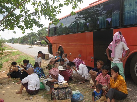 When a bus breaks down in Cambodia – the air flow stops. And then it’s HOT. We all climbed out of the suffocating bus and onto the side of the road. It was still incredibly hot, because now the sun was beating down on our bodies. We tried to hide under the limited shade of a nearby tree.