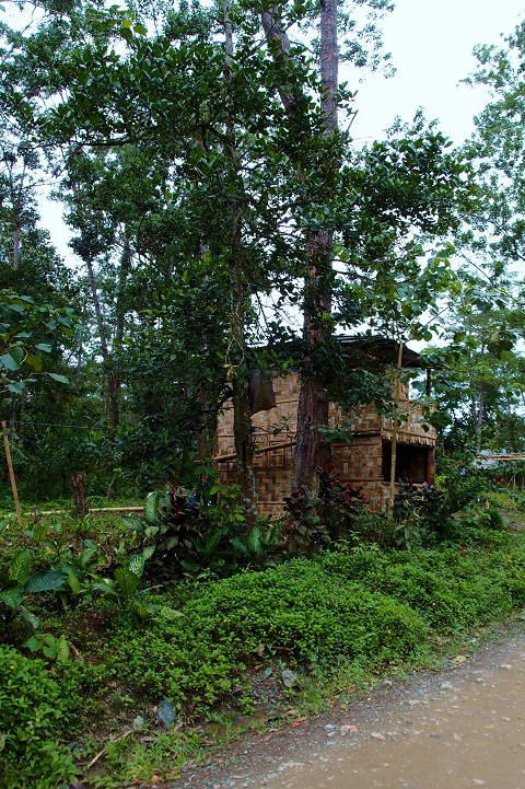 I stepped through bamboo framing into a small area where shoes were collected outside the house entrance, indicating for me to remove my sandals before going inside. Sandals off, and stepping up into a hut woven together and up on stilts was surreal.
