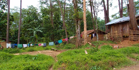 It was dense. It was humid. And in between the tall trees, bamboo and ferns were little thatch huts tucked and nestled into the scenery. It was breathtaking and beautiful as the mist swirled and trickled from treetop to air to ferns into babbling streams and pools of water everywhere! Muddy paths and patches between tall grass meandered in between the little huts erected on stilts.