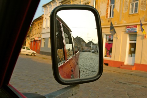 View of Șistarovăț from the rear view mirror.