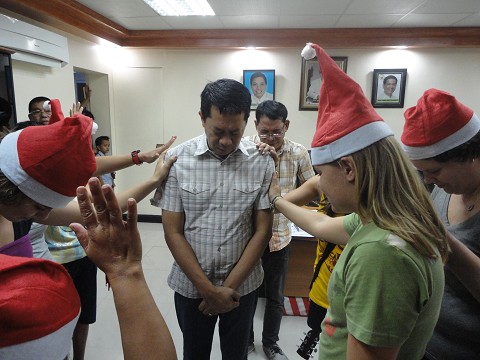 (We are caroling at churche families, and Mayor's office, here we are praying for the Mayor of Cainta, who welcomed us to his city, and thanked us for living with the hardship of San Buena area.)