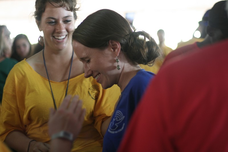 Carolyn, a new graduate enters the fire tunnel of prayer on Harvest School's graduation day.