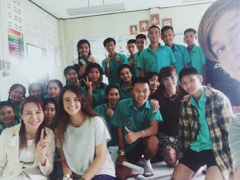 For the past couple weeks my team and I have been teaching English at a public middle/high school in Fang, Thailand. Elijah(my teammate), Eeddy(the Thai teacher I assist), and I went to recruit students from another school to attend Fangchanupathum School (where we teach). Almost everyone in Thailand loves sefies so here is a selfie that the students wanted to take with us:)