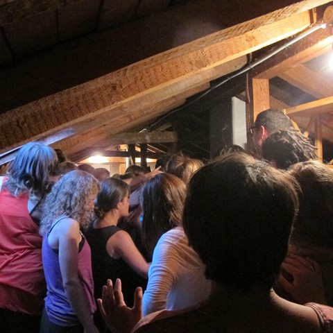 Our room was not like anyhing I have seen before. There is no queen size bed with a small refrigator full of beverages and snacks. Just 20 or so twin matresses layed down on the floor to give our heads rest. The room smells musky and the bright sun only has one window to cast down on us. The window to me was a simile. That one window lit up the whole attic, just like God is the only one who could bring light to our lives.