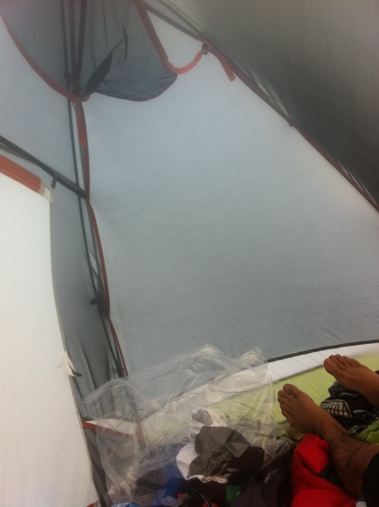 Wake up in my tent. It’s pretty cold and wet from the thunder storm that interrupted my sleep last night.