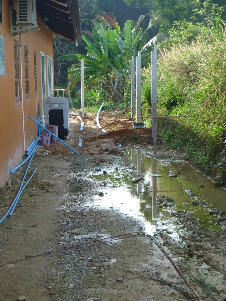 Laying down some pipes to build a drainage system for flooding from thunderstorms!