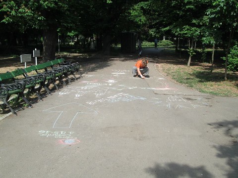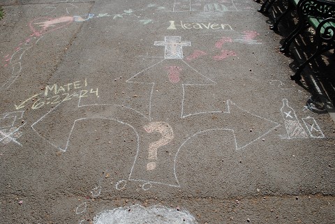 Chalk ministry in one of the parks in Bucharest. Kate drew a storyline about choosing a life with Christ and I wrote the Bible verses in Romanian