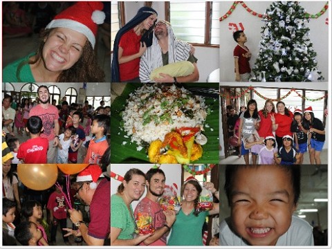 This is a collage of Christmas day. We were asked to put on a performance, play games with the kids, and then pass out presents to everyone who came