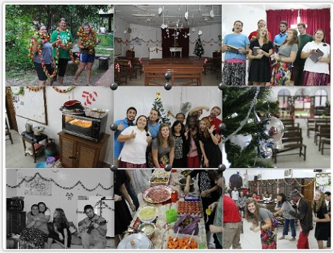 This is a collage from our Christmas Eve Potluck Dinner. We hosted a big dinner at the church and invited people from the church as well as our hosts family and friends