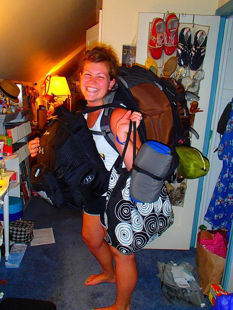 Pictured here is my bags just about as full as they could get (my big pack weighed in at 51 pounds! Just making the cut.). I know, I know, I cheated a little. I told many of you I was bringing just one bag. But let me tell you, it is no easy task trying to fit your whole life into three bags, let alone one! So I am starting my journey with three, but the bet stands to see how long I will last. I have no doubts that when it comes to carrying everything on my back, I will discover what it is I actually need real quick. I was always the type to have to learn the hard way.