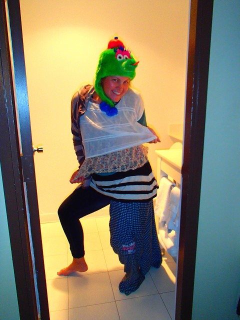 Me wearing all the clothes that didn’t make the cut once I got to Chicago (except I snuck back in my Phanatic Hat….it was a necessity!)