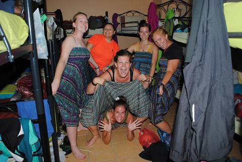 - They sell “Thai pants” at every tent market. Thai pants are also known as Aladdin pants in America. They have a low crotch, which makes them very easy to move in. The funny thing about Thai pants is that I have never seen an actual Thai person wearing them (in other words, they are a tourist trap, but I still love them)
