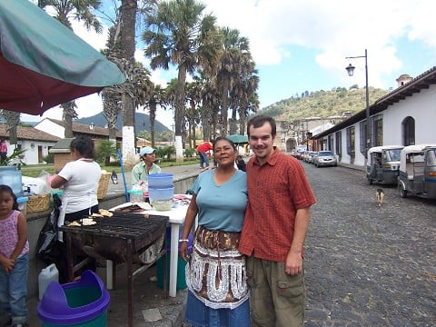 During our first week in Antigua, I spent a day walking around seeing what there was to see. I stopped for lunch at a little street vendor across from the hospital where some of our team has volunteered. Being as it was the middle of the day, I asked if I could sit under the vendors umbrella to be out of the sun while I ate. She said it was fine and we exchanged smiles and she and her friends laughed at me, which I have become acustomed to. I ate my lunch, told her I enjoyed it, and left for other things.