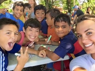 We are about to wrap up month one in Costa Rica and head to our next country, Nicaragua. We have gotten to work with a wide variety of ministries this month including a 4 week Bible study on John that our group led, weekly prayer walk over the local bars and casinos involved in prostitution and trafficking, homeless man’s ministry, Christian Surfers meetings, Pregnancy Center, soccer camp, construction and plumbing at La Ola, cleaning the church, anti-trafficking protest walk and the weekly kids club (where 80-100 kids gather at a park nearby for games, Bible lesson and skit, crafts and snacks – each taking home a bag of beans and rice for their family) – see pics of some of these below.