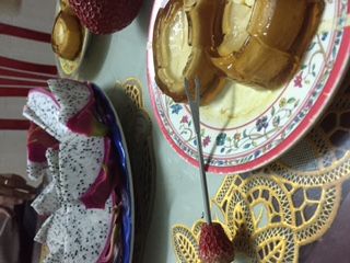 Then it’s time for dessert! We moved back downstairs where they served us kem belam, a custard dessert that tasted like caramel, and dragon fruit.
