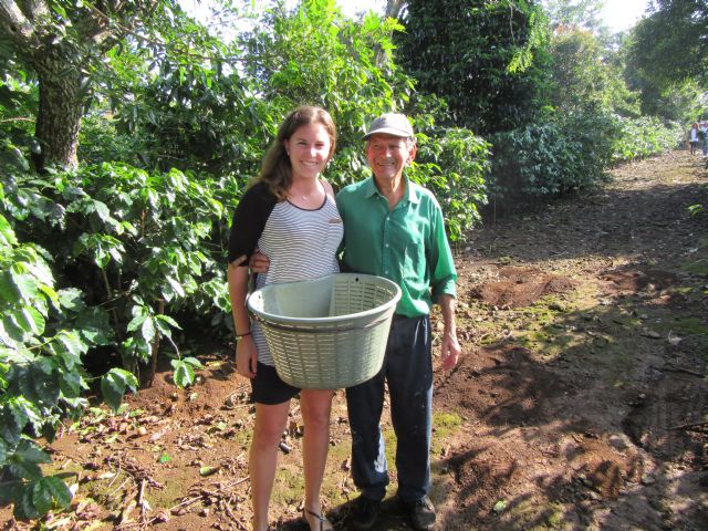We met Guillermo during house visits in Costa Rica. He is 82 years old, 50 years sober and still works so hard! His smile was infectious, and he was always so excited to share his story with us. He still works so hard doing odd jobs people have for him, and he picks coffee at the local fields. He allowed our team to come meet him one morning and he showed us how to pick coffee. The red and black ones are ripe, and are the ones you pick. You have to be sure to not drop any of them on the ground, or you look wasteful. Thank you Guillermo for the great stories and for teaching us the art of picking coffee!