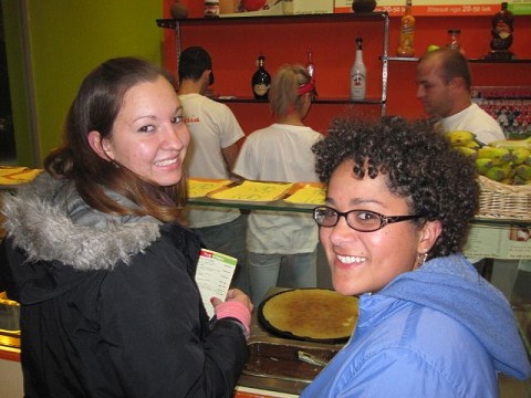 (Seeing the city in Romania)                (Getting crepes in Albania)