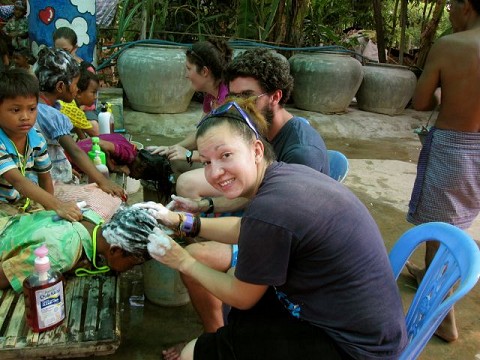 - helping to teach little kids how to brush their teeth and then being able to wash their hair with lice shampoo.