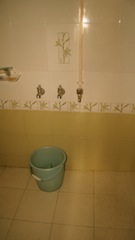 We take bucket showers. When the electricity’s on, the water’s hot. When its not, its cold.