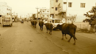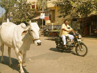 In India, cows are considered sacred so they are everywhere. Kind of like street dogs. Street cows.