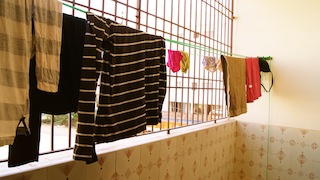 We take bucket showers. When the electricity’s on, the water’s hot. When its not, its cold.