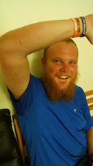 Ben modeling his millions of mosquito bites, The mosquitos are huge and yes, we have to take malaria pills!