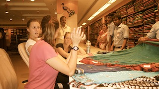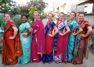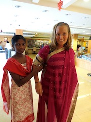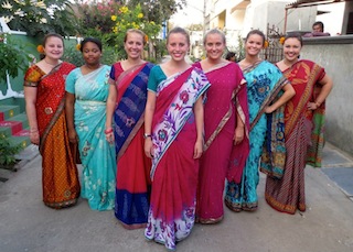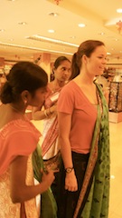 So by dress, I meant a saree. In most parts of India, especially the suburban parts, all women must wear sarees or tunics. They can't show their legs or shoulders. So we all got to go pick out sarees and have them made!