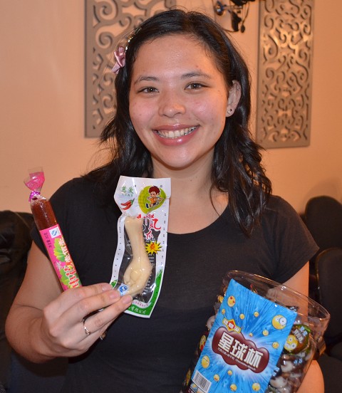 Jordan and Shannon, fellow young missionaries, brought me a spicy, pickled chicken foot and a hawthorn berry fruit roll, and another girl brought me a box of cookie treats.
