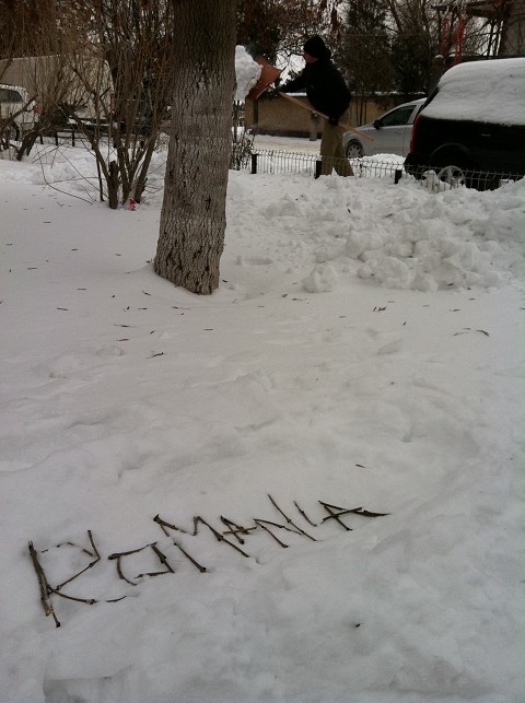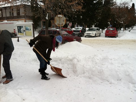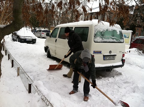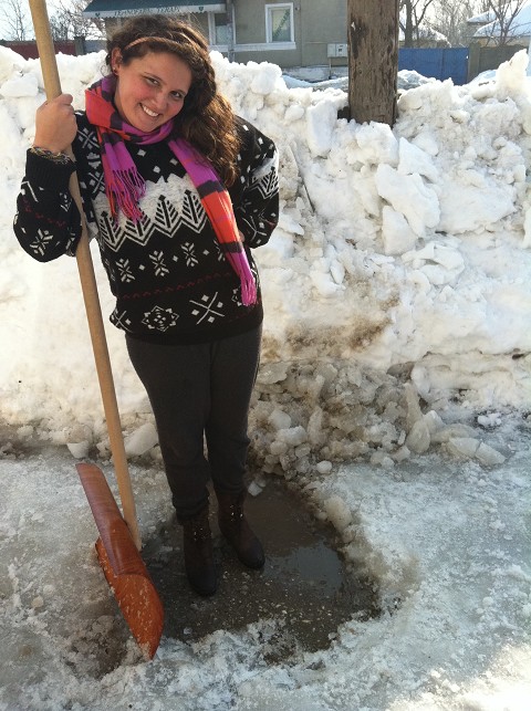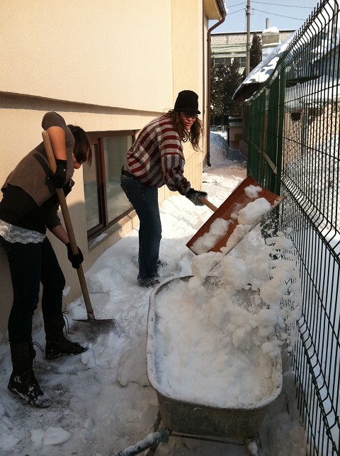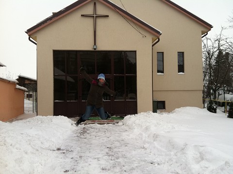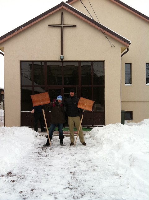 Upon arriving in Draganesti-Olt, the head pastor informed us that a huge part of their ministry during the winter time is shoveling snow. Here is David and I in front of the church, ready to head out into the blistery cold!