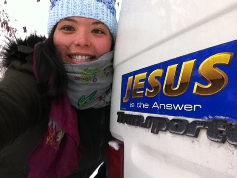 But luckily, I found a coat on sale in Africa for $7 so I was able to come at least a little bit prepared! That's right, church van, Jesus is the Answer! He'll get us through!!