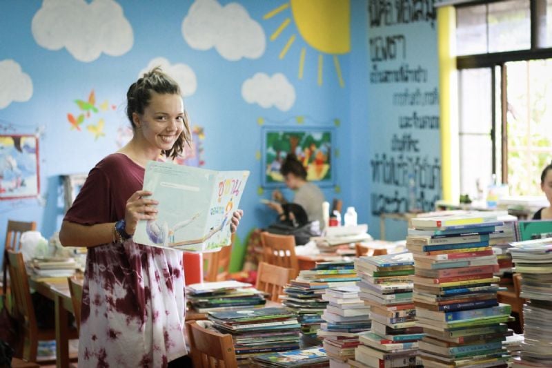 This last month in Thailand, me and a group of my squad mates partnered with Agape Children’s Home in Chiang Mai, Thailand. We spent most of our time organizing and preparing their NEW library for the kids- painting, labeling, organizing, and dreaming big for what this library will be for this ministry in the future. I wish I had a before and after picture to show you how drastic the change was from when we started and what we left them with. We brightened the place up with sunflowers, we painted a whole bookshelf on the outside wall, and we created a whole system for checking out books thanks to my wonderful teammate Tayler, Miss Librarian, who worked at a library before the race.