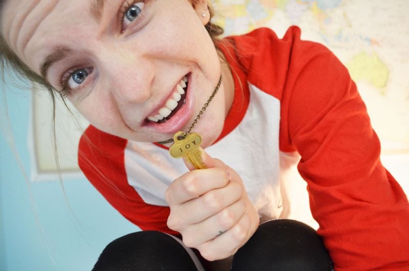 One morning she saw it. Engraved on a key, on a necklace, for sale on the merchandise table, was the word JOY.