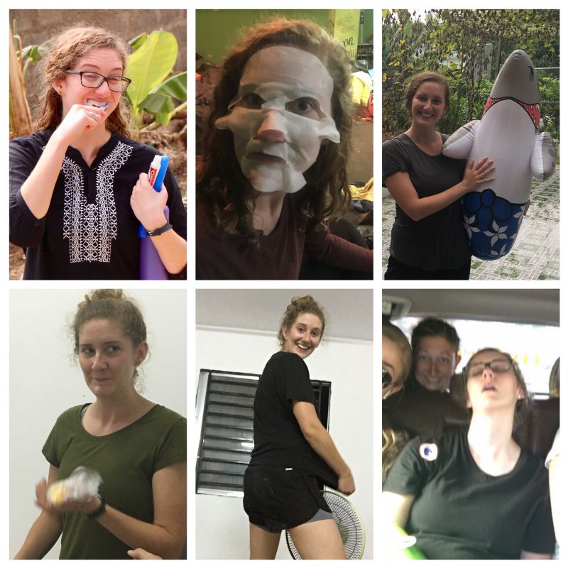 Jan-no onions for sure, will pick up accents in each country, and will take embarassing pictures of you which is how all these came about.