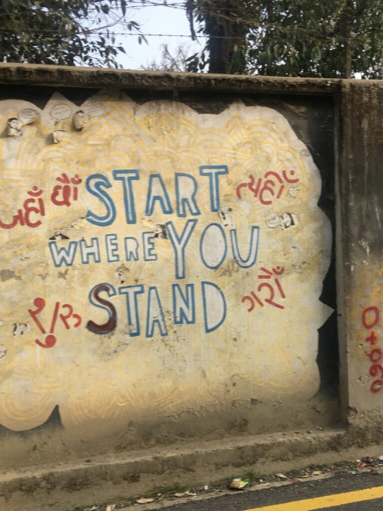 The final graffiti that I saw stated “start where you stand” this spoke to me. It reminded me to start with myself and look inward before I look outward.