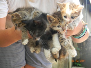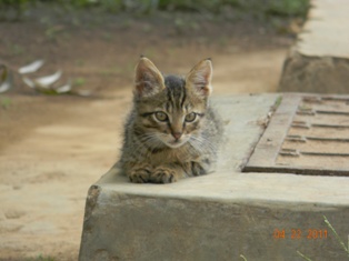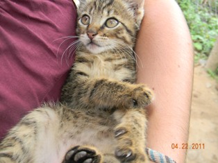 One of our neighbor’s here has 4 kittens and they are the cutest thing ever- or so I thought until the other day. One morning we got back from door to door and there was a kitten/cat sitting on our porch area. At first it would not come near us but only play ribbon and once in a while rub itself on our feet. Eventually it would let us pet it and then hold it. Well that night it never went away so w