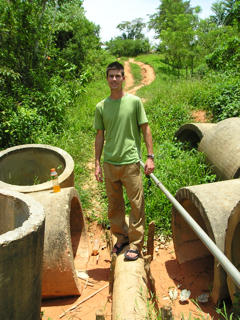 Recently one morning I put my ipod on my arm, put the headphones in, and went for a walk.  I didn’t know where the road would lead but I just walked.  The path got more beautiful with each step.  I saw mango trees, coconut trees, and tall green grass.  Many of the people were outside there homes mixing cement and adding on their house.  As I walked the road ended and became a small trail through the grassy area.  I came upon a young man my age pushing a wheelbarrow full of water jugs. It probably weighed about 200 pounds!  He was at the top of a steep hill and looked very tired and like he needed help down.  I asked if he would like some help and he nodded.  I took hold of the wheelbarrow and started down the hill pulling backwards to keep it from going to fast.  When I got to the bottom, sweat dripping off me, I thought to myself, “I’m finished”  I was wrong.  He motioned me to continue.  When I looked up there was a long trail about 50 yards!