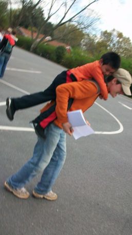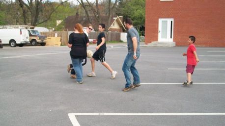 Then the little boys asked if we would like to go to a church parking lot (soccer field) up the road to play instead of the street.
