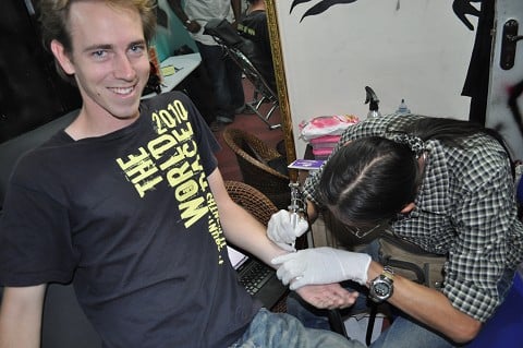 Nonetheless, I work on my design over the next few days and am finally set on what I want. Then another one of our contacts, Thelma, and I end up getting a tattoo together by this Thai guy near the ministry we've been helping out with all month. Throughout the whole experience I am telling myself, "I can't believe I'm actually doing this!" The 25 years leading up to this I never thought I would of been a person to get a tattoo, mostly cause I never knew what I wanted and if it would ever look good on me. But I'm glad I had friends around me who spurred me on and I'm also happy that I have a conversation starter forever printed on me.