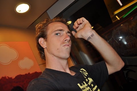 So eventually I end up backing out cause I wanted more time, but the rest of the guys go ahead. Andrew and Jared lose their tattoo virginity by both getting something on their left wrist. Andrew's says, "as He walked," and Jared's is a reference to Isaiah 6:8, "Here I am. Send me."