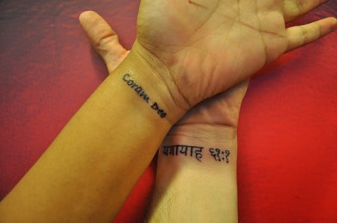 I decided on my left wrist because it is my weaker hand and whenever I lay hands on someone to receive healing I want to make the statement that it is the Lord who is performing the miracle, not me. I am just the vessel, the bridge, the conduit. He is the Source, the Life, the Vine! It was definitely a crazy, slightly spontaneous, and exhilarating experience, but I'm totally stoked that I did it and it has already been a cool way to witness to Hindus and Muslims who can read Hindi. My life has always been a witness to the world, but now my body is too!
