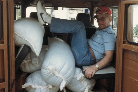 Willard with the rice and beans they distributed.)
