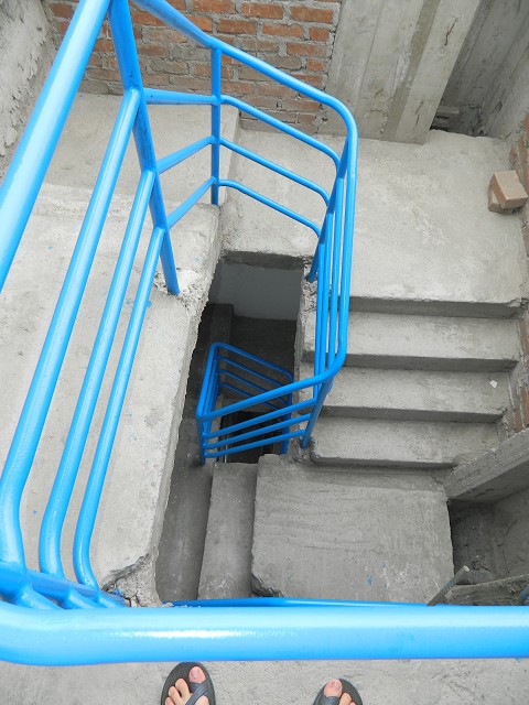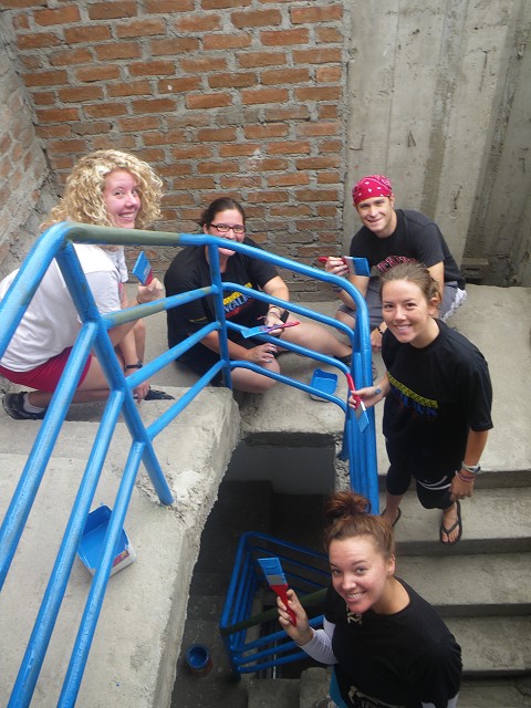 - Painted the railing in the stairwell from a dark green to a pretty blue. We had a lot of fun listening to music, talking with each other, laughing and eventually painting the railing.