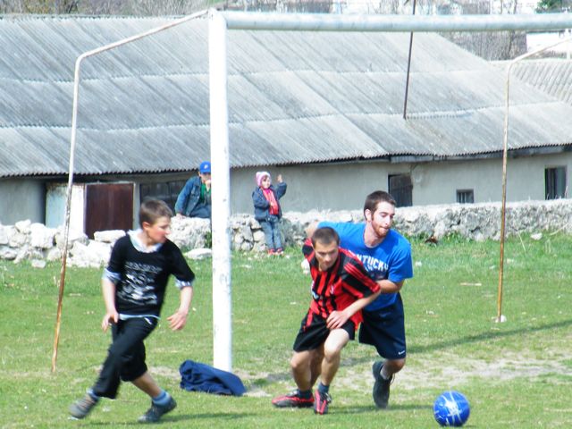 Now we have moved on from Cornish to Soldernisti, Moldova and we are working with pastor Vasilli who is opening a transition home for girls in May.   We have been digging a ditch for a drain pipe, and in the afternoons we have gone to local villages to play with children and give a message about Jesus.   Today I somehow found myself in an official soccer match in the village of Alcedari where I was a goalkeeper.   The players ages ranged from 45 to 13 years old.   I have not played soccer since I was 8 years old, and it showed big time.   At least, I played hard!   See below.