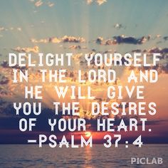“Delight yourself in the Lord and He will give you the desires of your heart.”