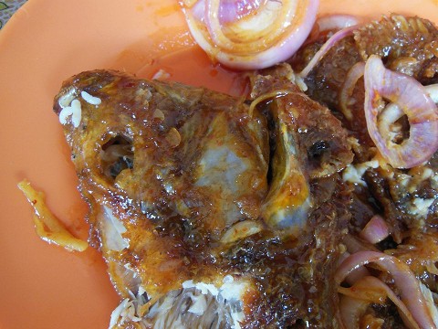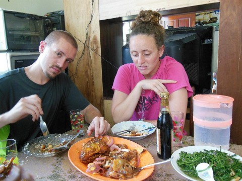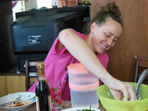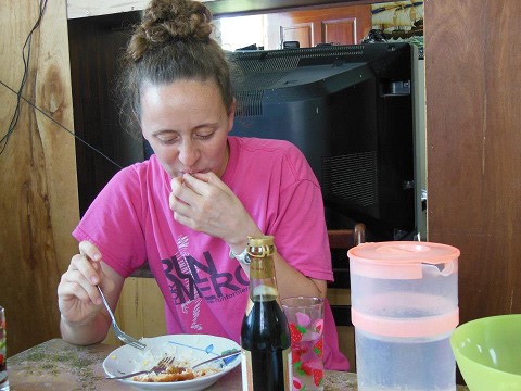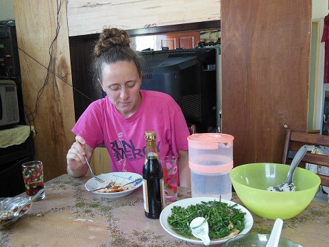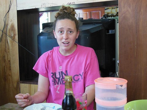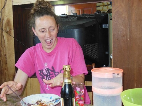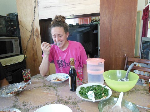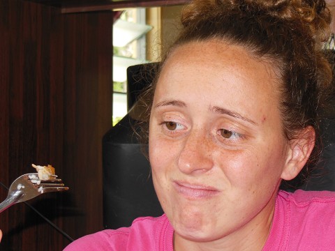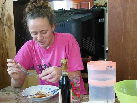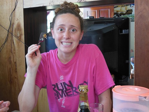 My brave teammate Cassie Hendrix ate a fish eye. I took photos, and I need captions.